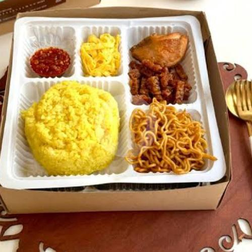 Nasi Kuning+mie+sambal Tempe+usus Pedas