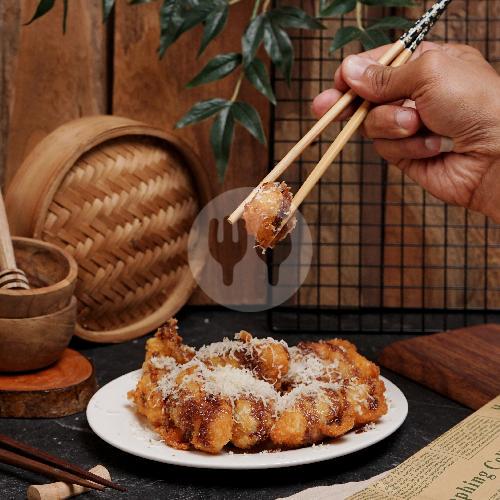 Vietnamese banana nuggets with chocolate and cheese topping. No Pork No Lard. 100 Percent Halal
