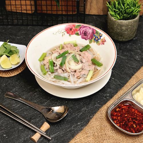 24hrs Collagen Beef Soup Served with Wok-Seared Special Beef Slices, Noodles, Scallions and Herbs. No Pork No Lard. 100 Percent Halal