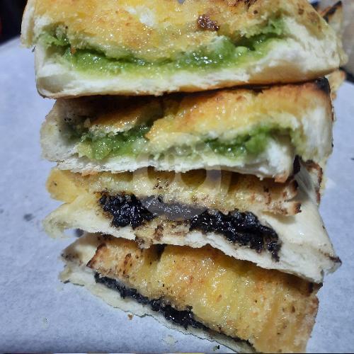 Roti Bakar Dengan Toping Macha Dan Coklat