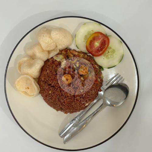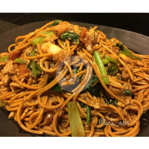 Mie + Udang + Cumi + Telur Orak Arik + Bakso Ikan + Sawi Hijau