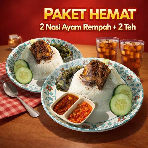 2 Nasi + 2 Ayam Goreng + Serundeng + 2 Lalapan + 2 Bayam Goreng Krispi + 2 Sambal Sereh + 2 Teh (Es/Hangat)