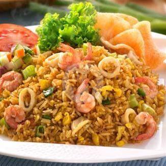 Nasi.Sayuran(Ceisin.Kol.daun Bawang).Telur.Bakso.udang.cumi.tambahan Kerupuk Dan Timun