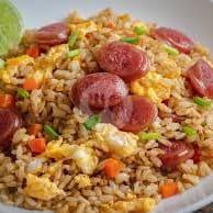 Nasi.Sayuran(Ceisin.Kol.daun Bawang)Telur.Ayam.bakso.sosis Tambahan Kerupuk Dan Timun