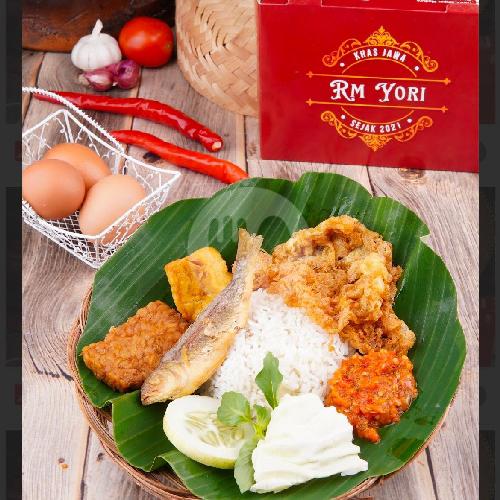 Nasi, Ayam Goreng, Telur Dadar, Ikan Asin, Tempe, Sambal Lalapan