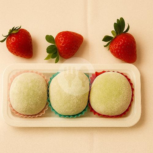 Mochi dengan isian buah stroberi yang di padukan dengan coklat/matcha/redbean