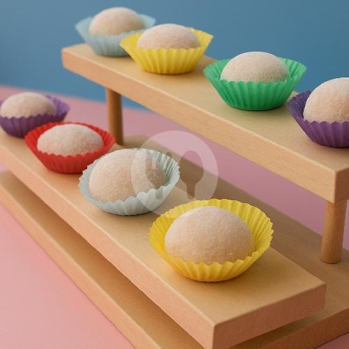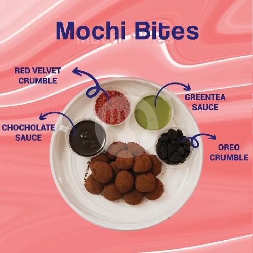 Mochi tanpa isian yang di nikmati dengan cara dicocol ke saos dan crumble