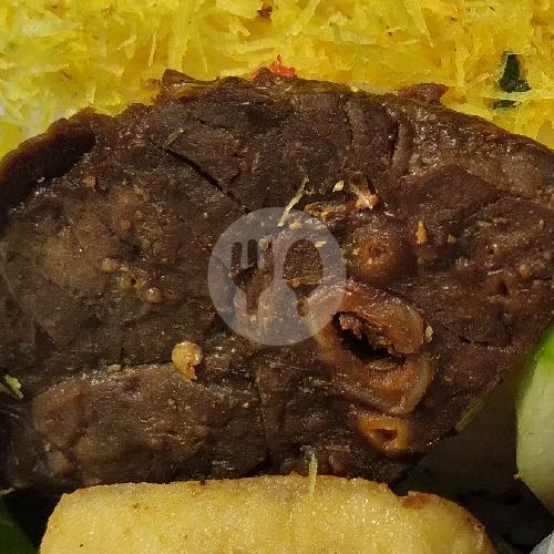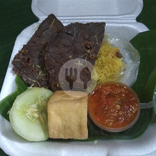 Nasi,Babat Goreng Spesial 2 Potong,Tahu,Serundeng,Sambel Bawang Spesial,Timun