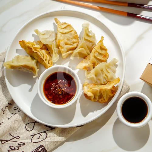 Gyoza Mix Goreng dan Kukus isi 10 pcs. Free Chili Oil dan sumpit. Gyoza terbuat dari daging ayam dan udang. Dijamin HALAL