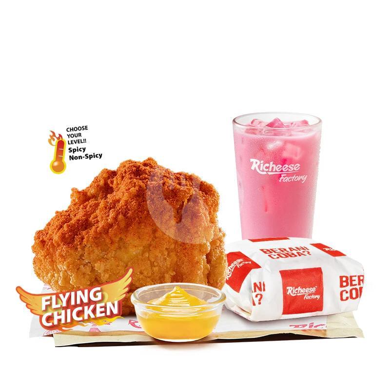 1 Flying Chicken + 1 Rice + 1 Medium Drink + Cheese Sauce
