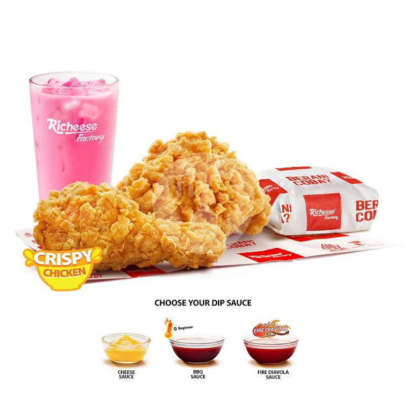 2 Crispy Chicken + 1 Rice + 1 Medium Drink + Cheese Sauce / Fire Diavola / BBQ Sauce Lev-0