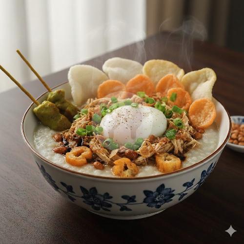 Bubur Ayam Super Komplit. Permakluman: Mohon Maaf Kadang Lapak Lagi Ramai Jadi Tidak Bisa Pisah Topping Semua.