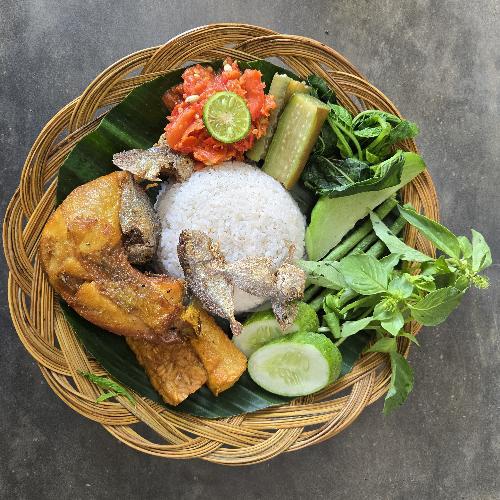 Nasi + Ayam Kota Goreng + Lalapan + Tahu + Tempe + Sambal + Ikan Asin