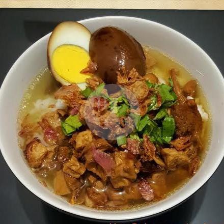 Bubur ayam kecap + telur kecap bisa di ganti dengan telur asin,taburan bawang , kerupuk pangasit goreng, cocok untuk sarapan kenyang sore.