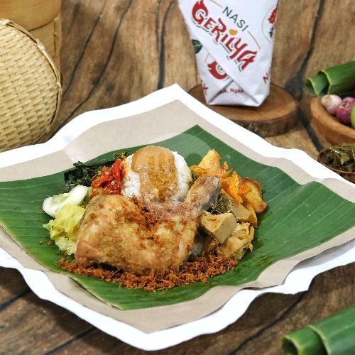 Nasi Padang, Ayam Goreng Bumbu (Pesan Baru Goreng), Sambal Merah, Sambal Hijau, Sayuran Dan Keripik Kentang Balado