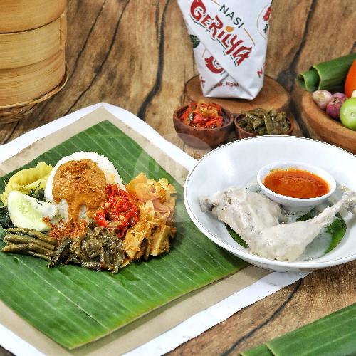Nasi Padang, Dendeng Sapi Bakar Balado, Sambal Merah, Sambal Hijau, Sayuran Dan Keripik Kentang Balado