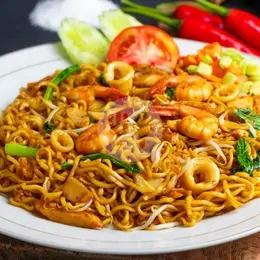 Mie Goreng Semur Spesial + Ayam Goreng + Sosis / Nugget + Sea Food + Acar + Sayuran + Telur + Kerupuk