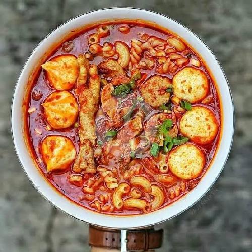 Mie,kerupuk,telur,makaroni,sosis,bakso,cumi flower,odeng,chikuwa,ceker,fishroll,siomay kering