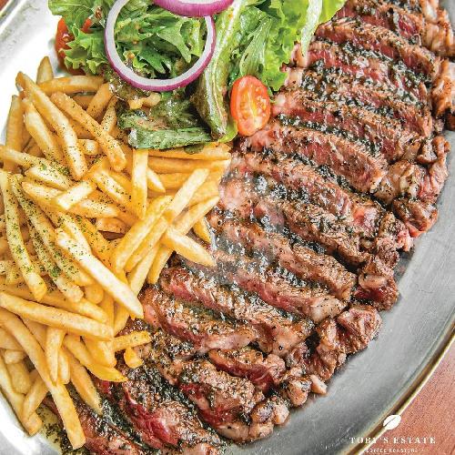 350gr USDA prime ribeye, umami butter, house salad, straight-cut fries