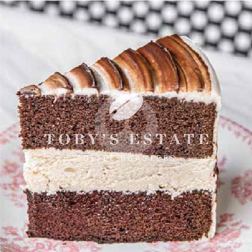 Moist chocolate sponge cake, Baileys custard, white chocolate ganache