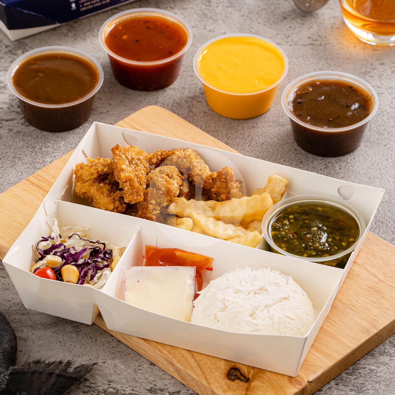 Nikmati lezatnya ayam goreng dada yang juicy dan renyah, disajikan dengan nasi pulen, kentang goreng krispi, salad segar, serta pilihan berbagai saus spesial: mushroom, cheese, blackpepper, BBQ, dan sambal ijo khas Warkalie. Komplit dan praktis.