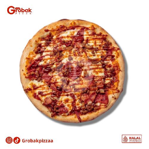 Pizza daging sapi gurih sapi asap sosis sapi bakso sapi Rusher keju mozzarella lumer dengan lapisan saus barbeque