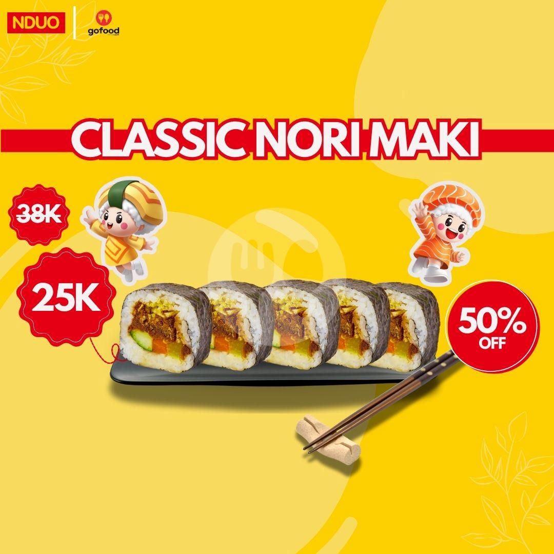 Sushi roll klasik dengan isian sederhana tapi nikmat.