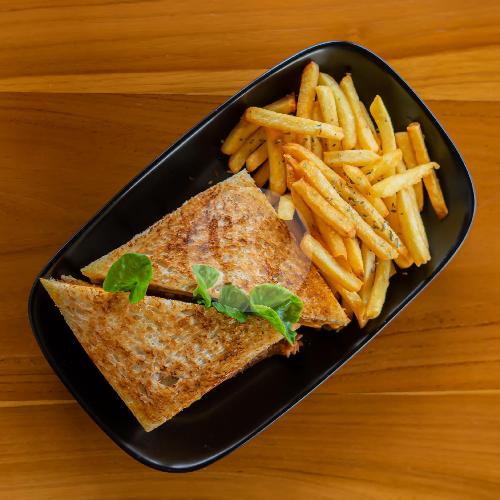 Burger Bun, Beef Patty, Chedar Cheese, Brown Sauce, French Fries