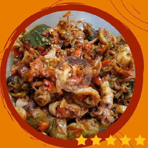 Berisi Nasi dengan sambal cumi asin kecombrang yang aromatik, pedas menggoda. plus kering tempe dan mentimun