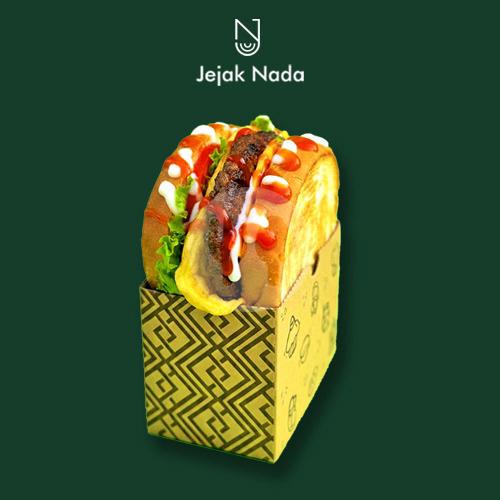 Roti Panggang Nikmat Dengan Isian Beef Patty, Sayur, Tomat, Telur