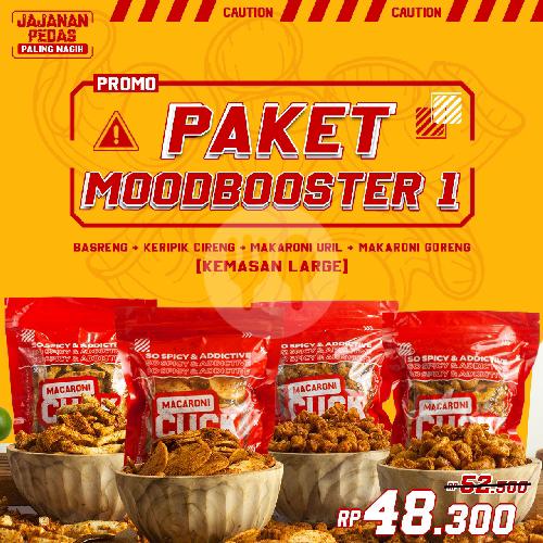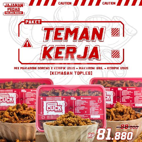 Keripik usus toples (menu 1), mix macaroni goreng x keripik usus toples (menu 2), makaroni uril toples (menu 3),