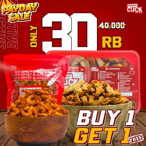 makaroni ngembang reg (menu 1), mie kremes reg (menu 2), keripik cireng reguler (menu 3)