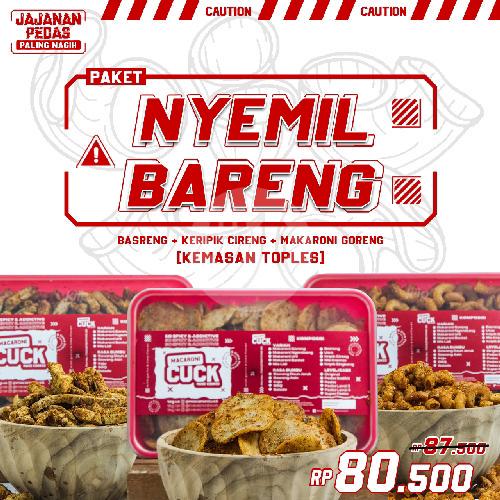 Basreng toples (menu 1), keripik cireng toples (menu 2), makaroni goreng toples (menu 3)