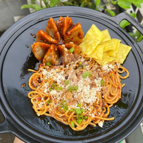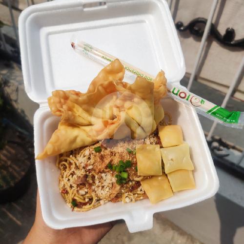Mie + taburan + pangsit isi ayam + keripik pangsit