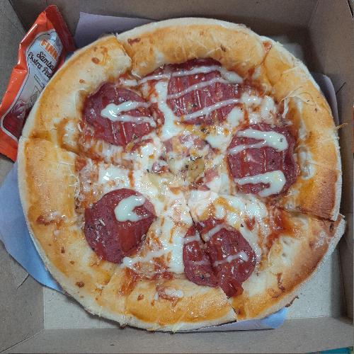 Toping : Sous bolognese, peperoni, keju, mayonaise,oregano, Mozarela