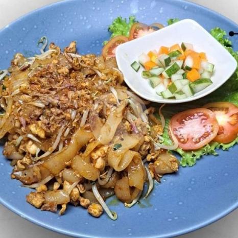 Kwetiau Goreng Dengan Isian Ayam, Telor,Sayur Sawi Dan Kecambah Gurih Dan Lezat