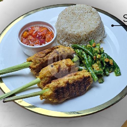 Sate Lilit Balutan Kelapa Dengan Ayam,Nasi Putih,Tumis Kacang Panjang,Sambal Matah