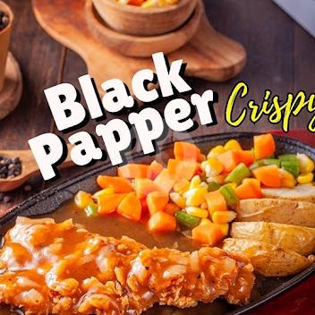 Chiken Steak Crispy Dengan Sayuran Segar Dan Saus Blacpaper
