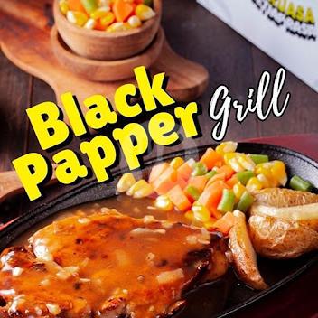 Steak Ayam Yang Digrill/panggang Dengan Saus Blackpaper, Sayuran Segar Dan Kentang Goreng