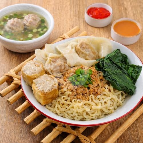 Bakmie Yamin Spesial, Daging Ayam,Sayur, Pangsit Rebus, Bakso Tahu, Bakso Ayam Dan Kuah Kaldu