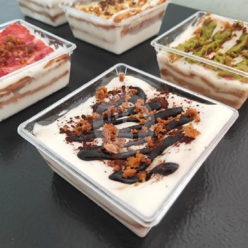 Dessert dari olahan crackers yang dipadukan dengan keju, whippycream, susu dan toping glaze Coklat (Keep refrigerated). Dimensi Cup:volume 200 ml.ukuran atas 8,5cm x 8,5cm ukuran bawah 6,5cm x 6,5cm tinggi 3,5cm