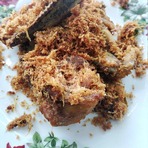 Nasi bungkus dengan sambal ayam rendang dan sayur (yang tersedia saat itu)