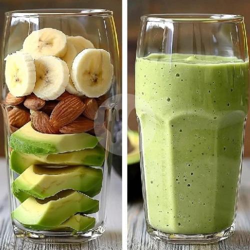 Anti Oksidan Membantu Menjaga Berat Badan,Buah Alpukat ,Kacang Almond ,Buah Pisang Gula Cair,SKM,Es Batu Cup 18oz