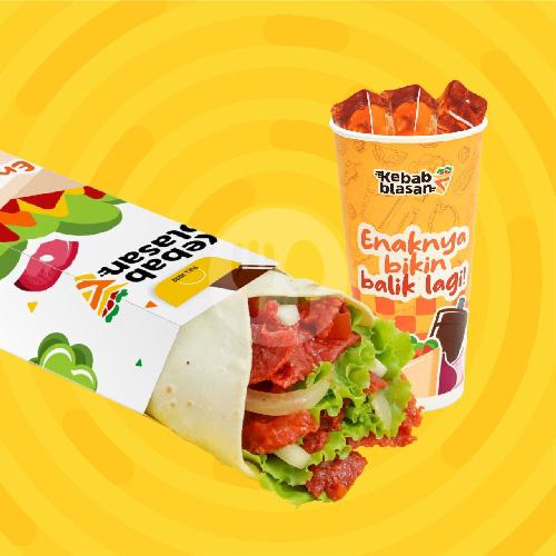 Kebab Original yang berisi daging sapi ditaburi sayuran segar ditambah dengan saos khas kebabblasan