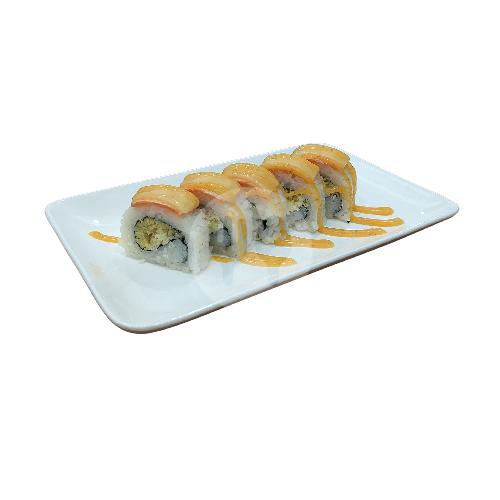 cheese, tempura with salmon mozzarella and spicy mayo