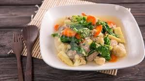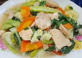 Capcay dengan toping ayam,telur puyuh dan bakso