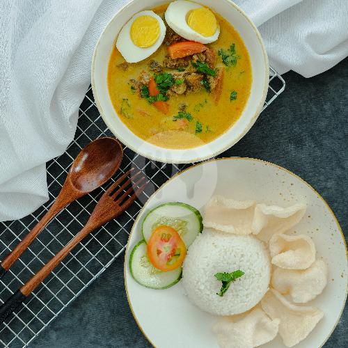 Nasi + Soto Betawi + Telur + Kerupuk Melinjo