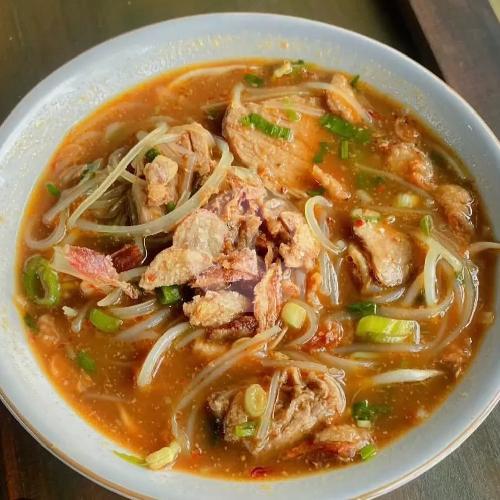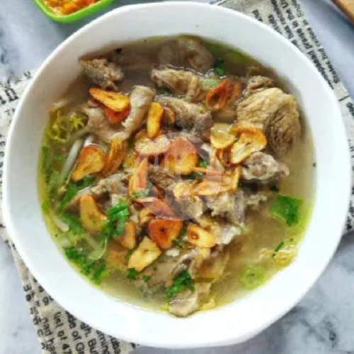 Soto dengan bumbu rempah kuah bening kekuningan dengan toping daging murni,nasi putih,free es cokelat ukuran 12 oz di cup sealer biar tidak tumpah.Foto hanya pemanis buatan.