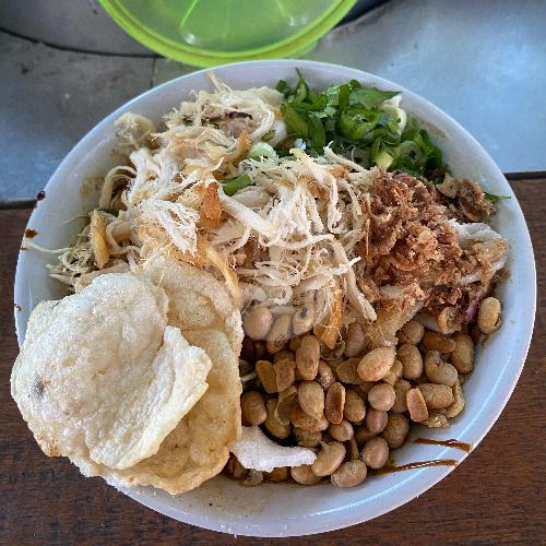 bubur ayam+daun bawang+kacang kedelai +daun bawang+bawang goreng+ kecap asin manis
