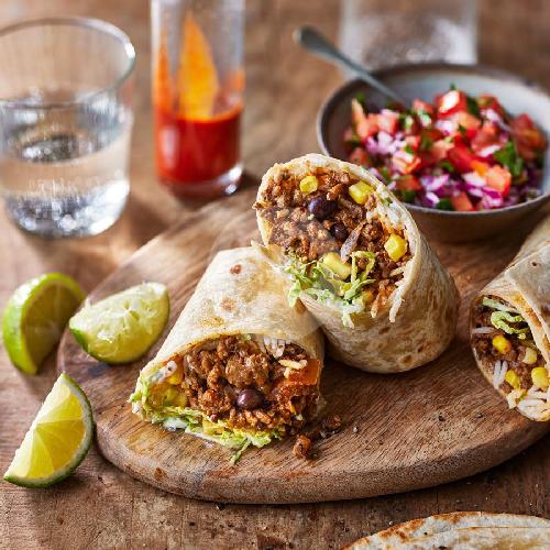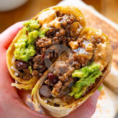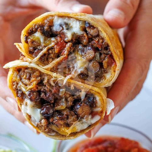 Tortila daging beef mix ayam selada bombay tomat timun extra saus